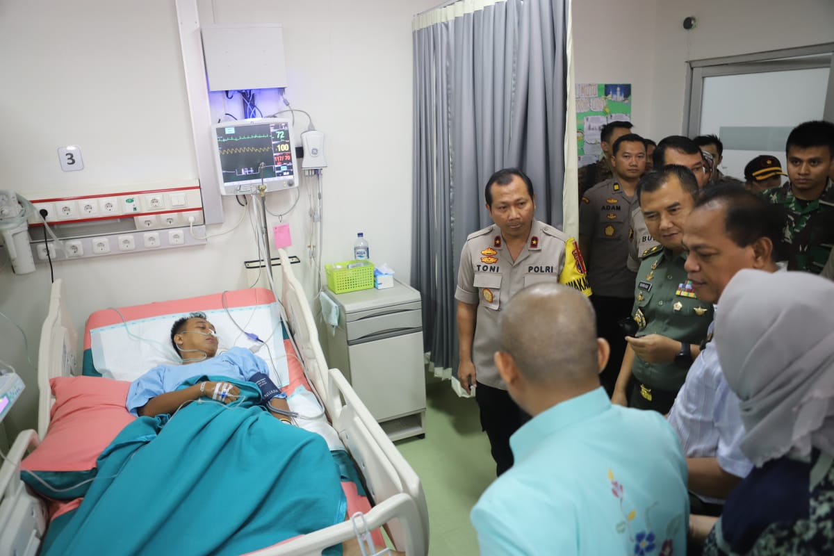 Sebelum konferensi pers digelar, Wakapolda Jatim Brigjen Pol Toni Hermanto, Kasdam V Brawijaya Brigjen TNI M Bambang Ismawan dan Kabid Dokkes Polda Jatim Kobes Pol dr Budi Heriyadi menyempatkan datang ke RSUD Suwandi untuk menjenguk Praka Yudha.