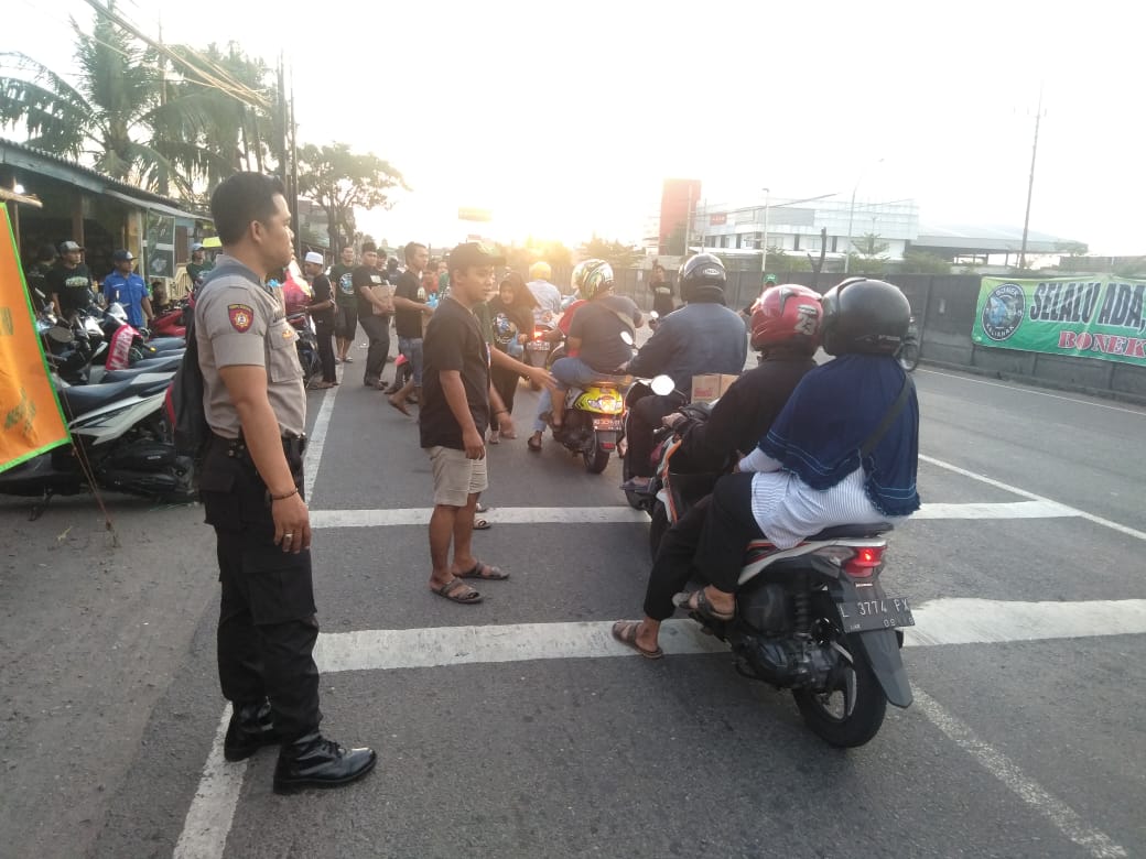 Saat itu pengaturan lalu lintas dilakukan personil Unit Sabhara untuk mencegah penumpukan pengendara di sekitar lokasi pembagian takjil.