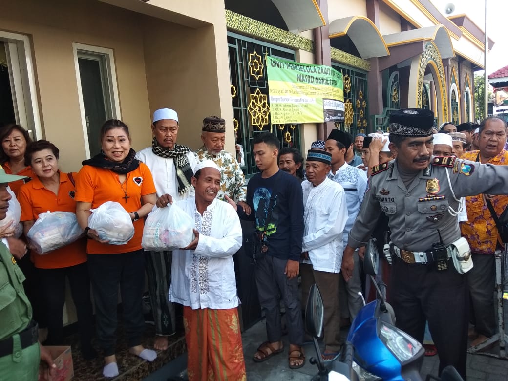 Total ada 800 sembako yang dibagikan secara cuma-cuma dibantu oleh pihak takmir dan pengurus Masjid Nurul Fatah.