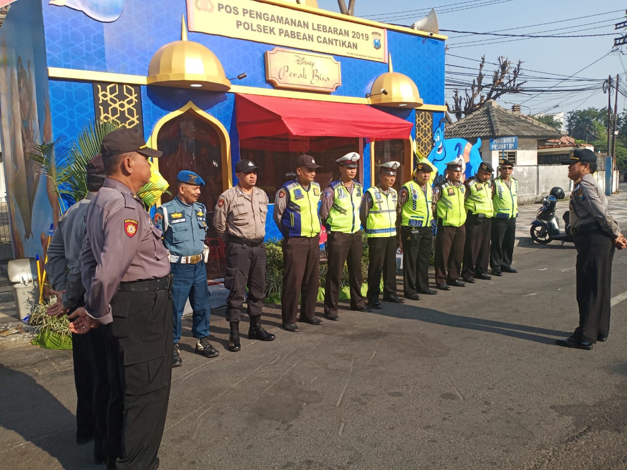 Selain personil Polsek Pabean Cantikan, penjagaan Posyan yang dibuat dengan desain bertema Aladin ini juga melibatkan persnil TNI.