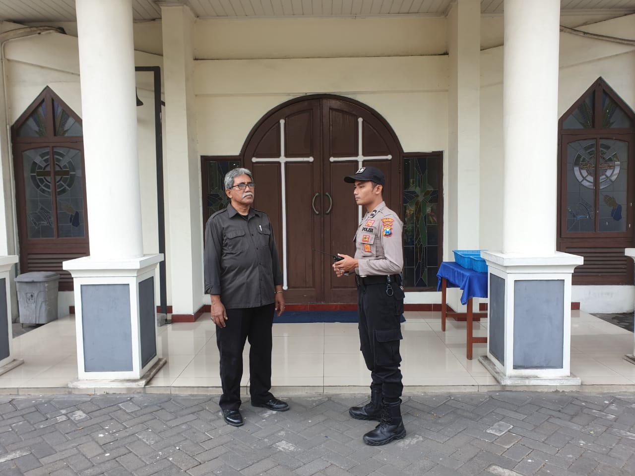 Seputarperak.com- Patroli dilakukan personil Unit K9 Satsabhara Polres Pelabuhan Tanjung Perak di Gereja Bahtera Hayat, Minggu pagi, 2 Juni 2019.