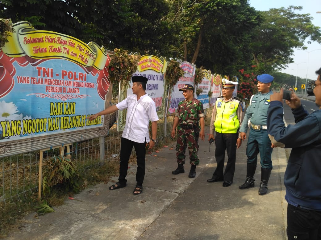 Usai memantau arus mudik, Kapolres melanjutkan memantau karangan bunga yang berada di sisi timur Jembatan Suramadu. Nampak puluhan karangan bunga dijajar rapi di pagar pembatas jalan.