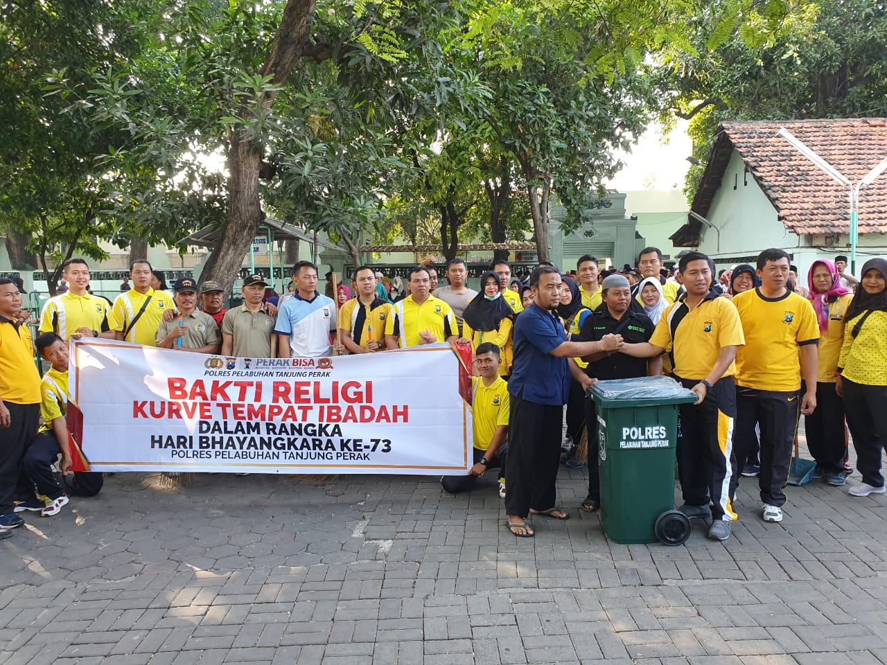 Seputarperak.com- Kerja bakti bersih-bersih makam dan halaman Masjid Ampel, dilakukan Polres Pelabuhan Tanjung Perak dalam rangka memperingati Hari Bhayangkara Ke-73.
