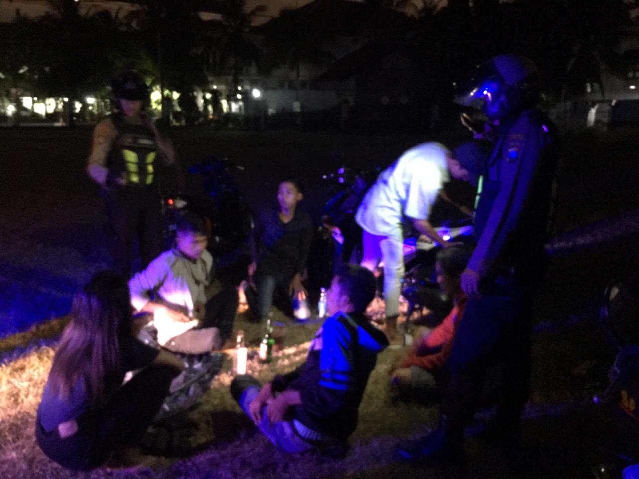 Seputarperak.com- Anggota Unit Raimas Satsabhara Polres Pelabuhan Tanjung Perak mengamankan 5 orang remaja laki-laki dan 1 remaja perempuan yang sedang menggelar aksi minum minuman keras (miras) di lapangan Prapat Kurung, Minggu dini hari, 23 Juni 2019.