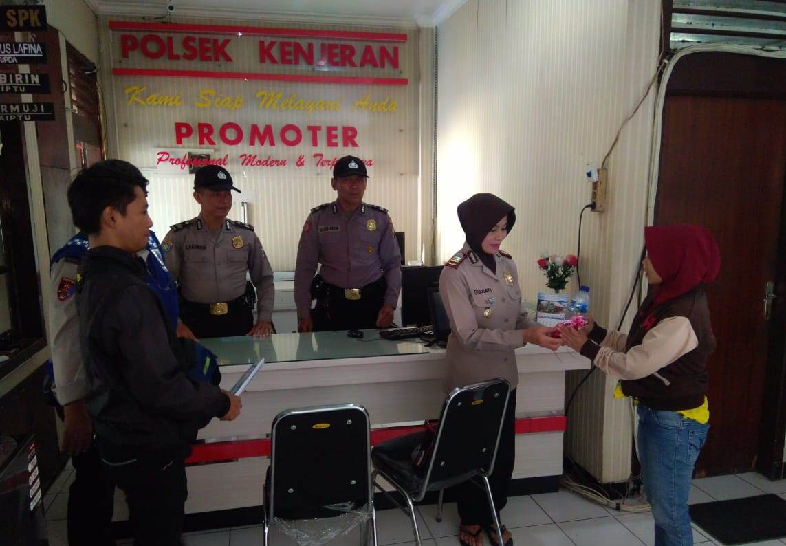 Pembagian coklat ini dilakukan oleh Wakapolsek Kenjeran, AKP Sugiati bersama anggota SPKT.