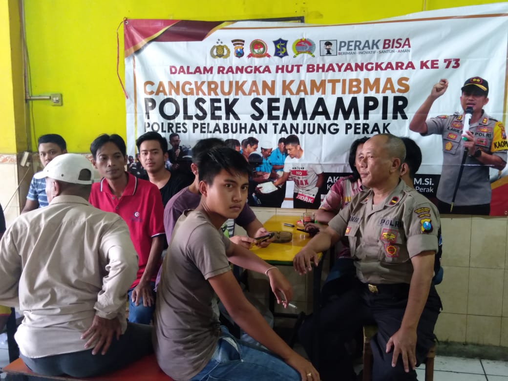 Seputarperak.com- Dalam rangka memperingati Hari Bhayangkara Ke-73, Polsek Semampir, Polres Pelabuhan Tanjung Perak menggelar acara cangkrukan bersama masyarakat.