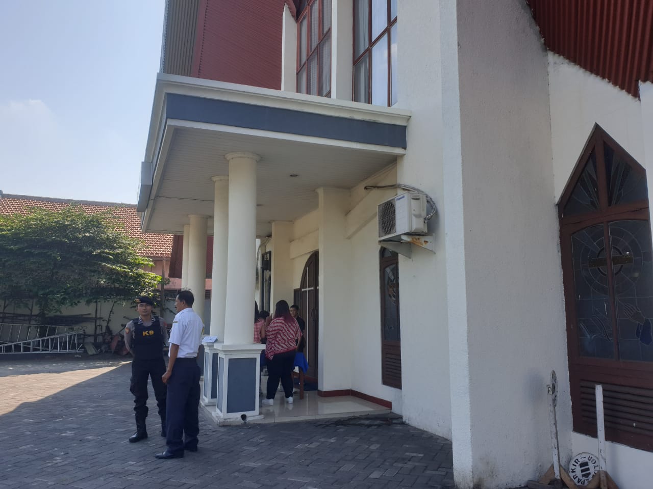 Usai memastikan situasi aman, personil K-9 melanjutkan dengan melakukan penjagaan bersama petugas sekuriti gereja.