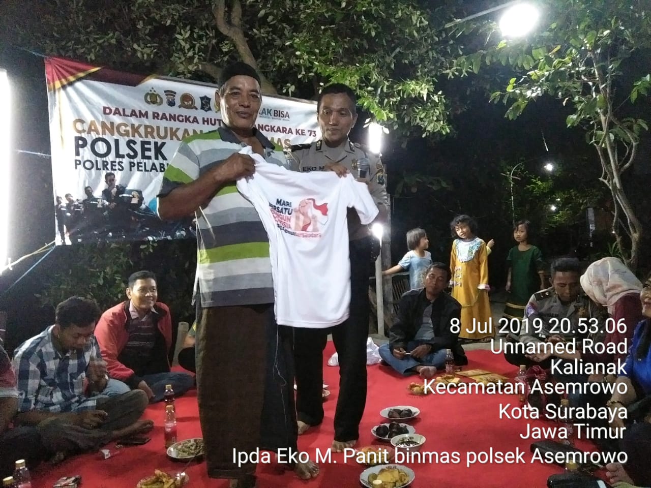 Seputarperak.com- Cangkrukan Senin Militan digelar Polsek Asemrowo, Polres Pelabuhan Tanjung Perak di RT 01 RW 01 Kelurahan Genting Kalianak, Senin malam, 8 Juli 2019.