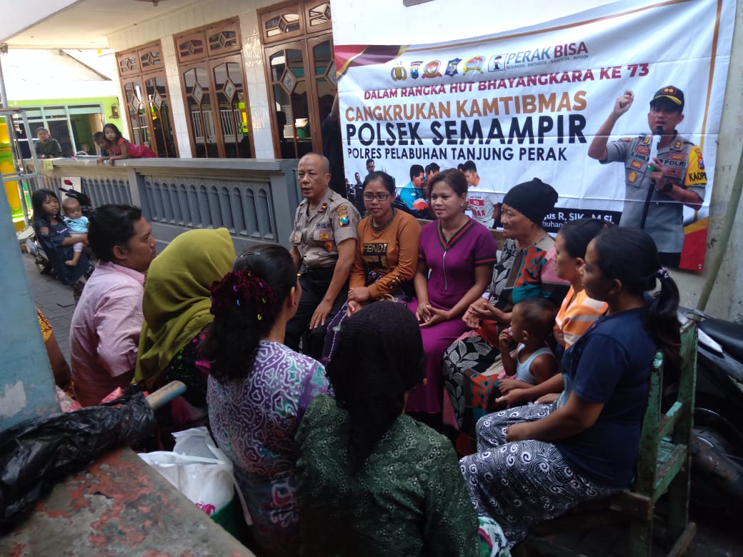 Seputarperak.com- Dalam rangka memperingati Hari Bhayangkara Ke-73, Polsek Semampir, Polres Pelabuhan Tanjung Perak menggelar kegiatan cangkrukan bersama masyarakat, Kamis, 11 Juli 2019.