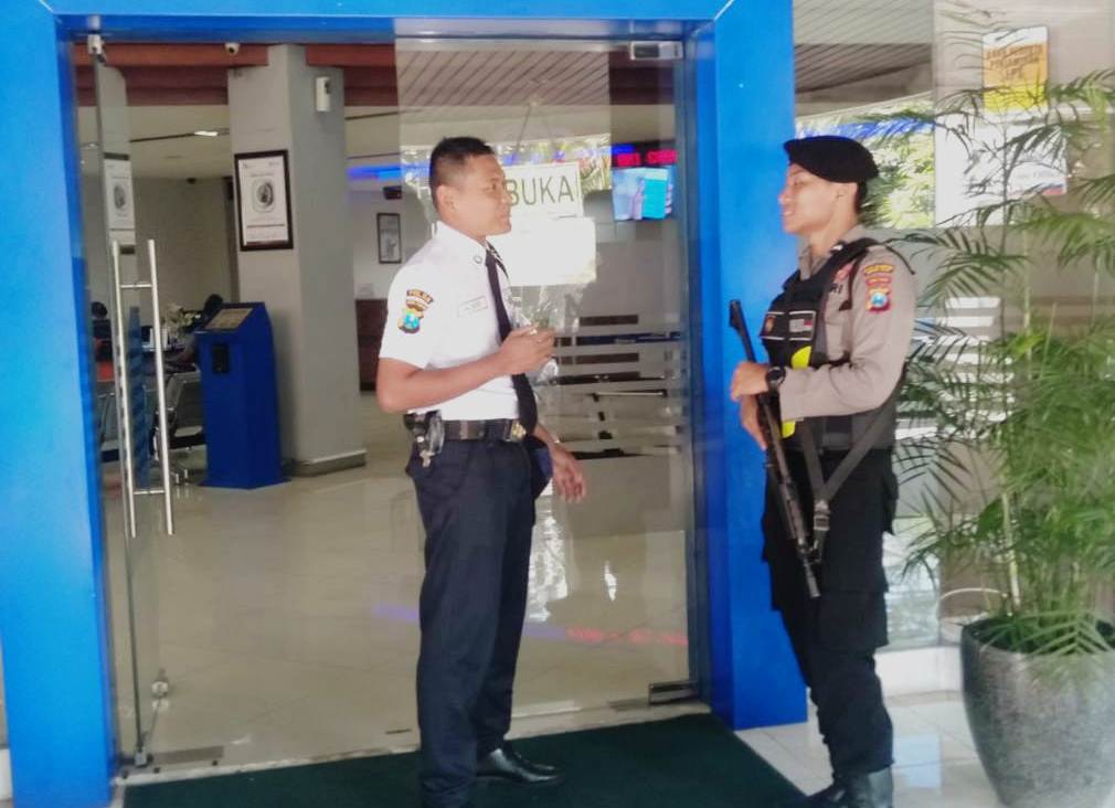 Seputarperak.com- Kantor bank merupakan salah satu tempat yang rutin dilakukan patroli oleh personil Satsabhara Polres Pelabuhan Tanjung Perak.