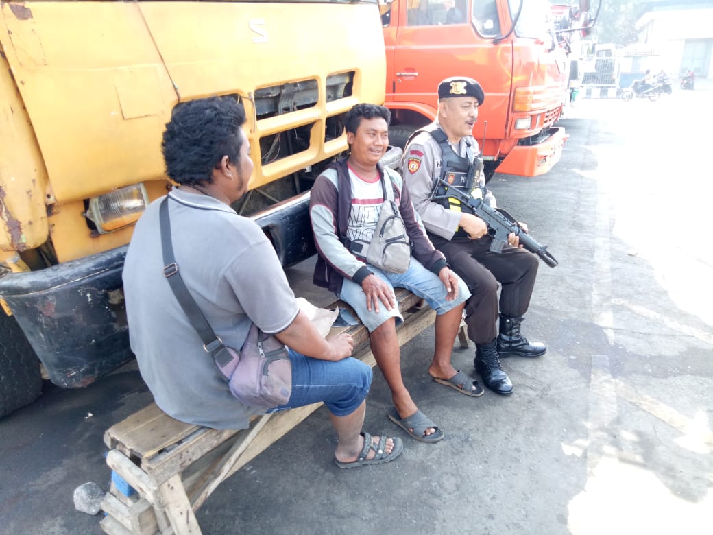 Seputarperak.com- Patroli dialogis dilakukan personil Satsabhara Polres Pelabuhan Tanjung Perak di Pelabuhan Roro, Senin siang, 15 Juli 2019 untuk menyampaikan pesan-pesan kamtibmas kepada sejumlah sopir truk di lokasi.