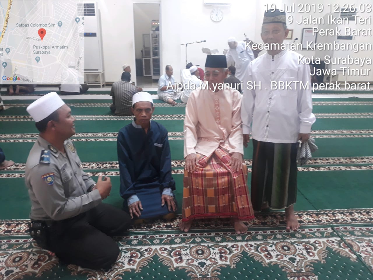 Seputarperak.com- Program Jumat Darling dilaksanakan Aipda Yanuri, Babinkamtibmas Perak Barat, Polsek Krembangan, Polres Pelabuhan Tanjung Perak di Masjid Ukhuwah, Jalan Ikan Cucut, Jumat siang, 19 Juli 2019.