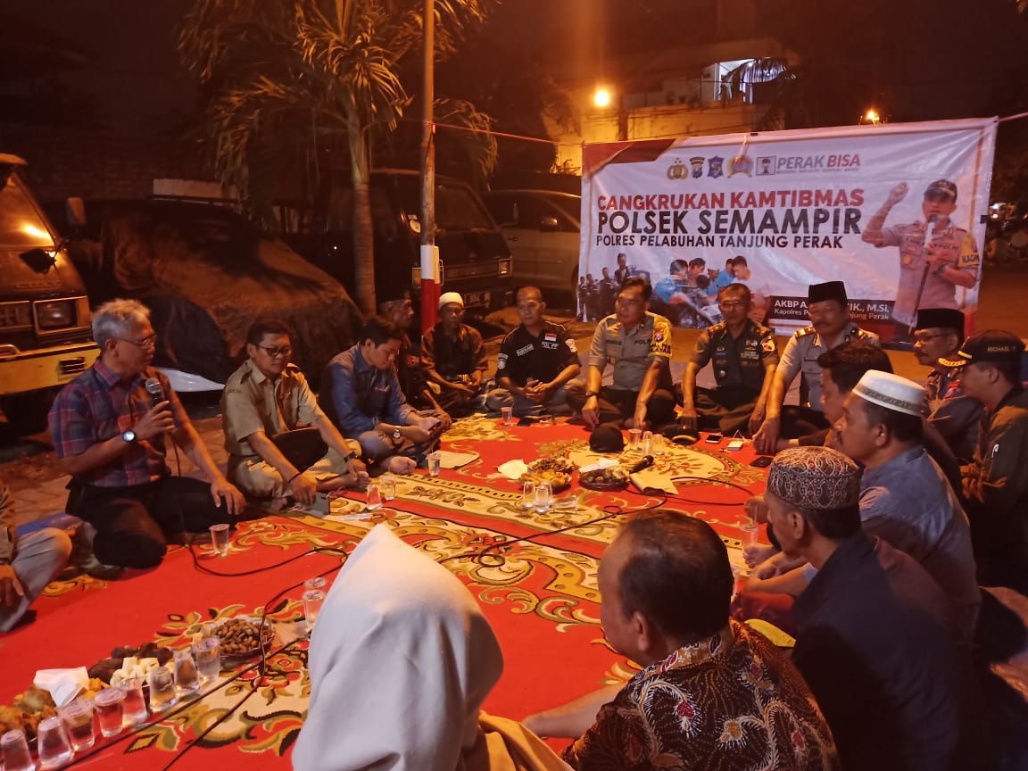 Seputarperak.com- Polsek Semampir, Polres Pelabuhan Tanjung Perak menggelar acara cangkrukan bersama warga RT 02 RW 04 Kelurahan Sidotopo, Senin malam, 29 Juli 2019 di jalan depan pos kamling setempat.