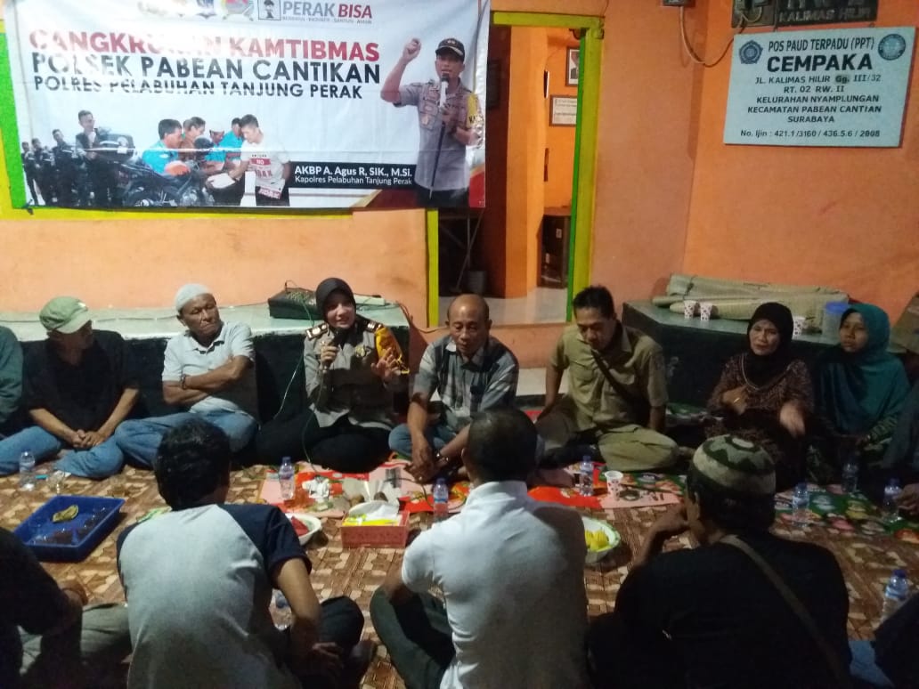 Acara cangkrukan yang merupakan wujud pelaksanaan Program Senin Militan, salah satu dari enam Program Unggulan Polres Pelabuhan Tanjung Perak ini dipimpin oleh Kapolsek Pabean Cantikan, AKP Mellysa Amalia, SH, S.I.K.