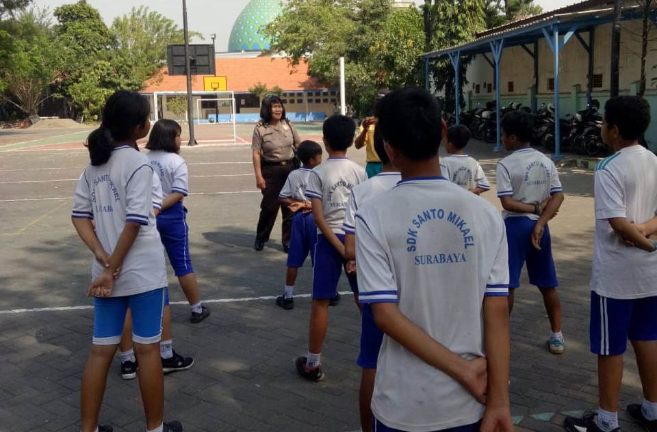 Seputarperak.com- Kunjungan dilakukan Iptu Rossa, Panit Binmas Polsek Krembangan, Polres Pelabuhan Tanjung Perak di SDK Santo Mikael, Jalan Tanjung Sadari, Rabu pagi, 7 Agustus 2019.