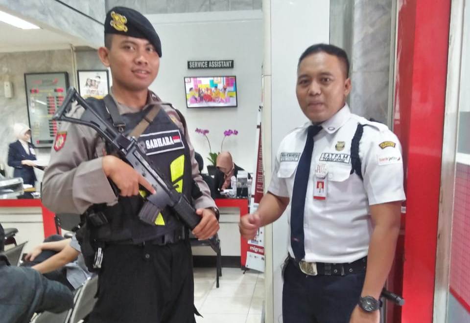 Saat itu personil Satsabhara tidak hanya berjaga, tapi juga ikut melakukan pengawalan kepada nasabah yang baru mengambil uang dalam jumlah besar, minimal sampai masuk mobil dan meninggalkan halaman kantor Bank Jatim.